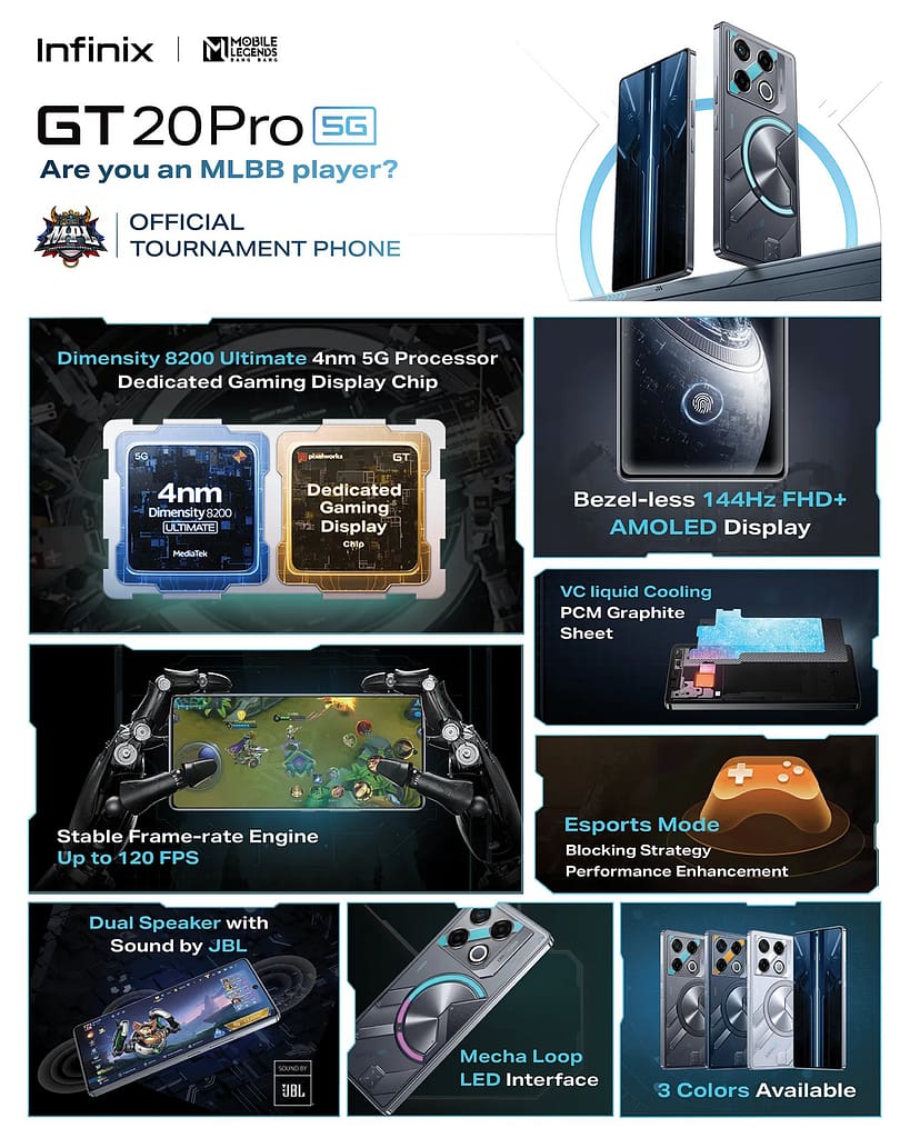 If you are serious about playing MLBB, the GT20 Pro 5G is the perfect gaming device. It’s the only one of its kind to have a Dedicated Gaming Display Chip (Pixelworks) that provides stable gameplay with low temperature and a 4nm Processor that is powerful yet low on battery consumption so that you can stay in the game longer. It also has a stunning 144Hz FHD+ AMOLED Display that enhances visuals, making game effects like an explosion of powers more realistic. This is just the tip of what the GT20 Pro 5G can do to help elevate and increase your SAVAGE and MVP record in MLBB.